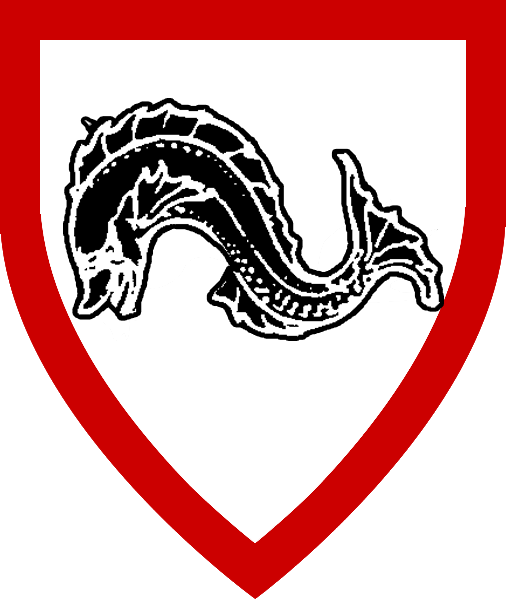 Arms: Argent, dolphin naiant sable, a bordure gules.